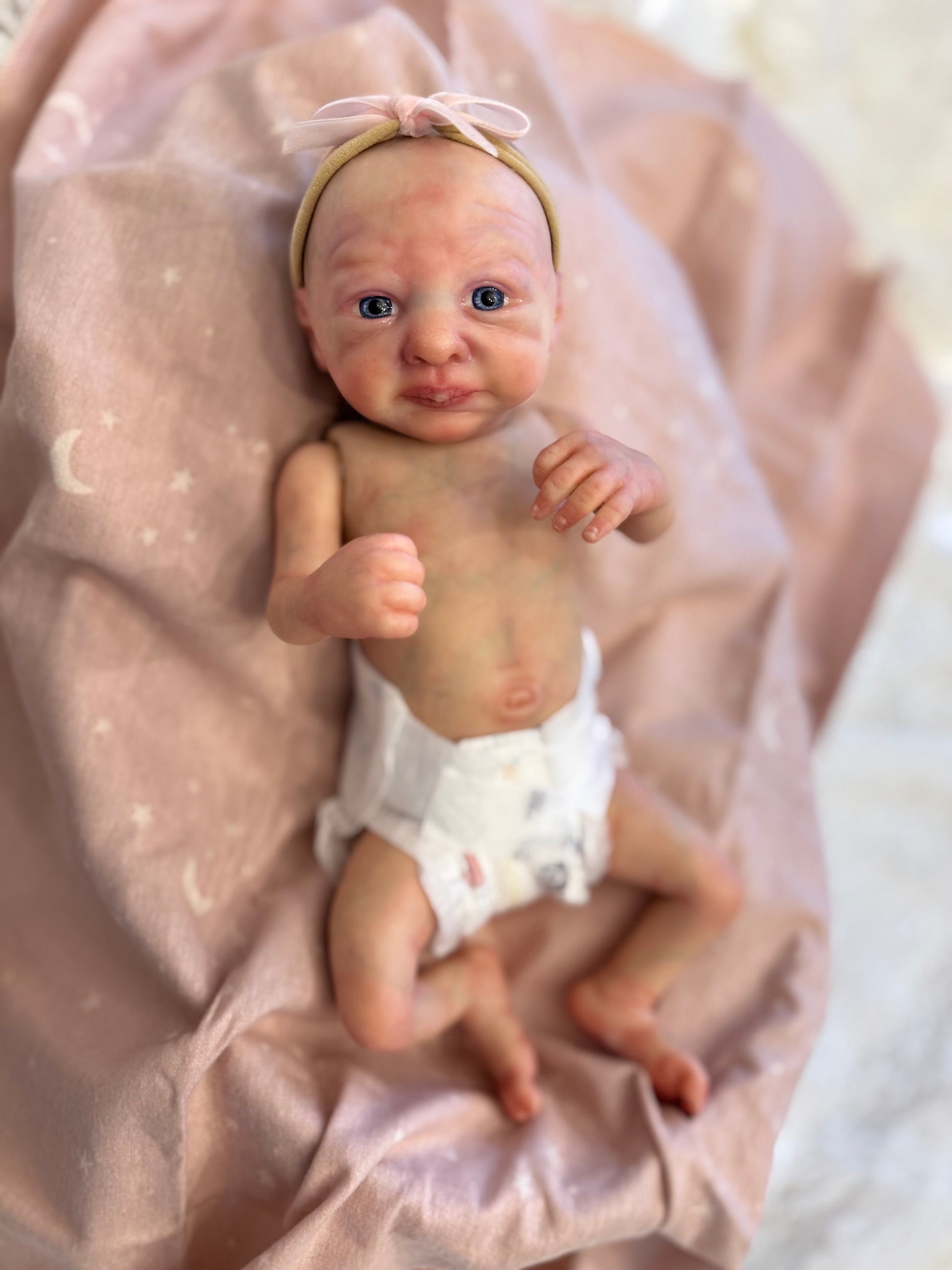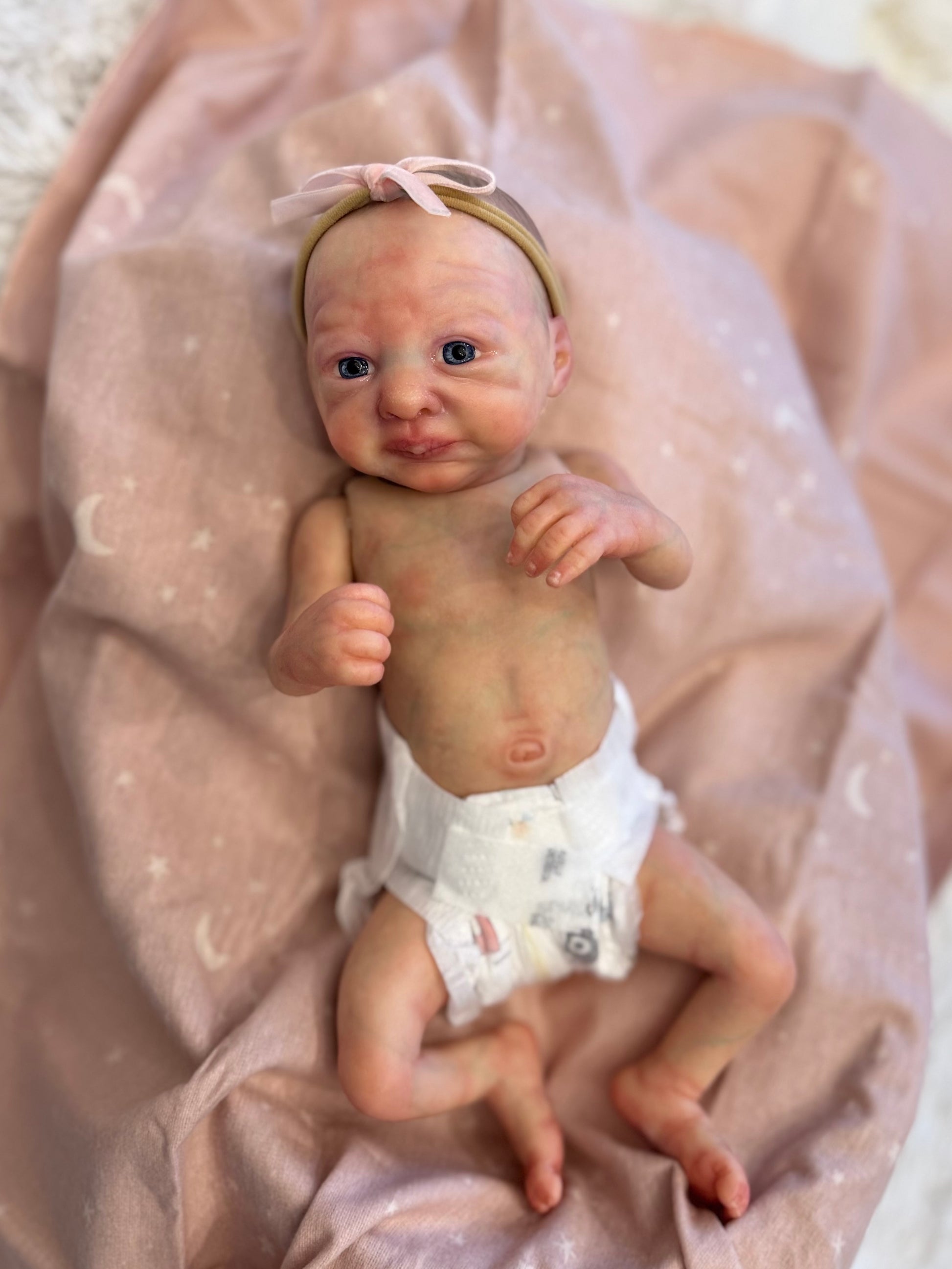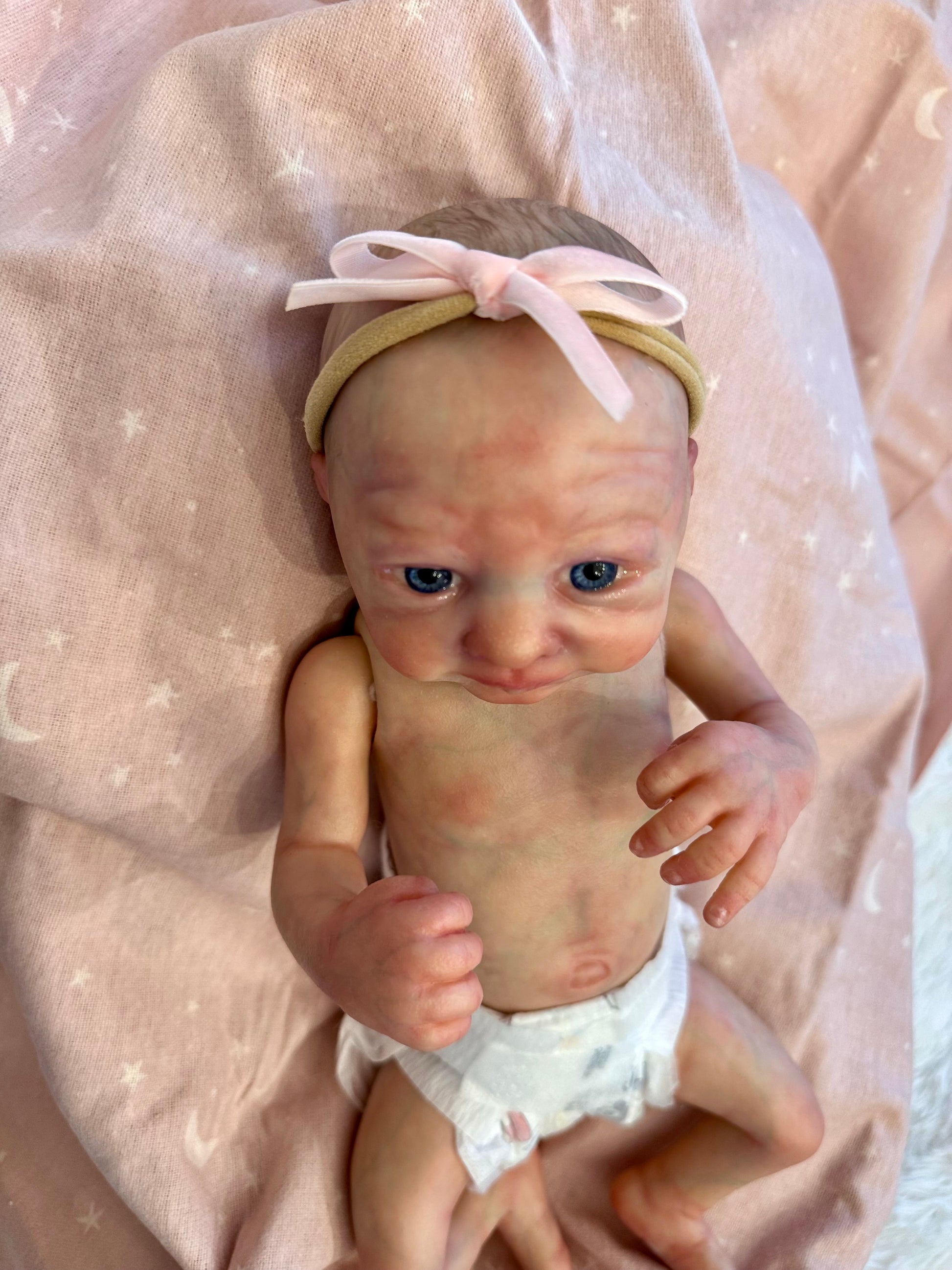 Charlie is a micro preemie baby weighing 2lb 6oz by Marita Winters. Charlie has been painted with heat set paints.