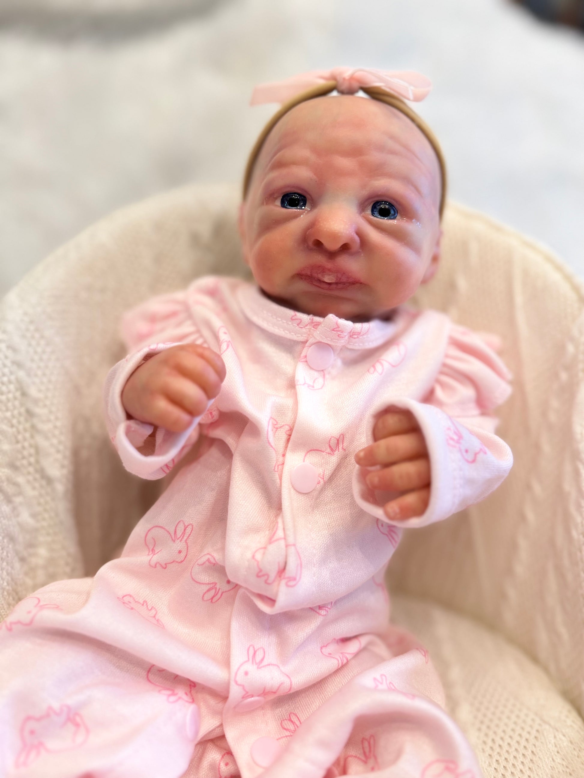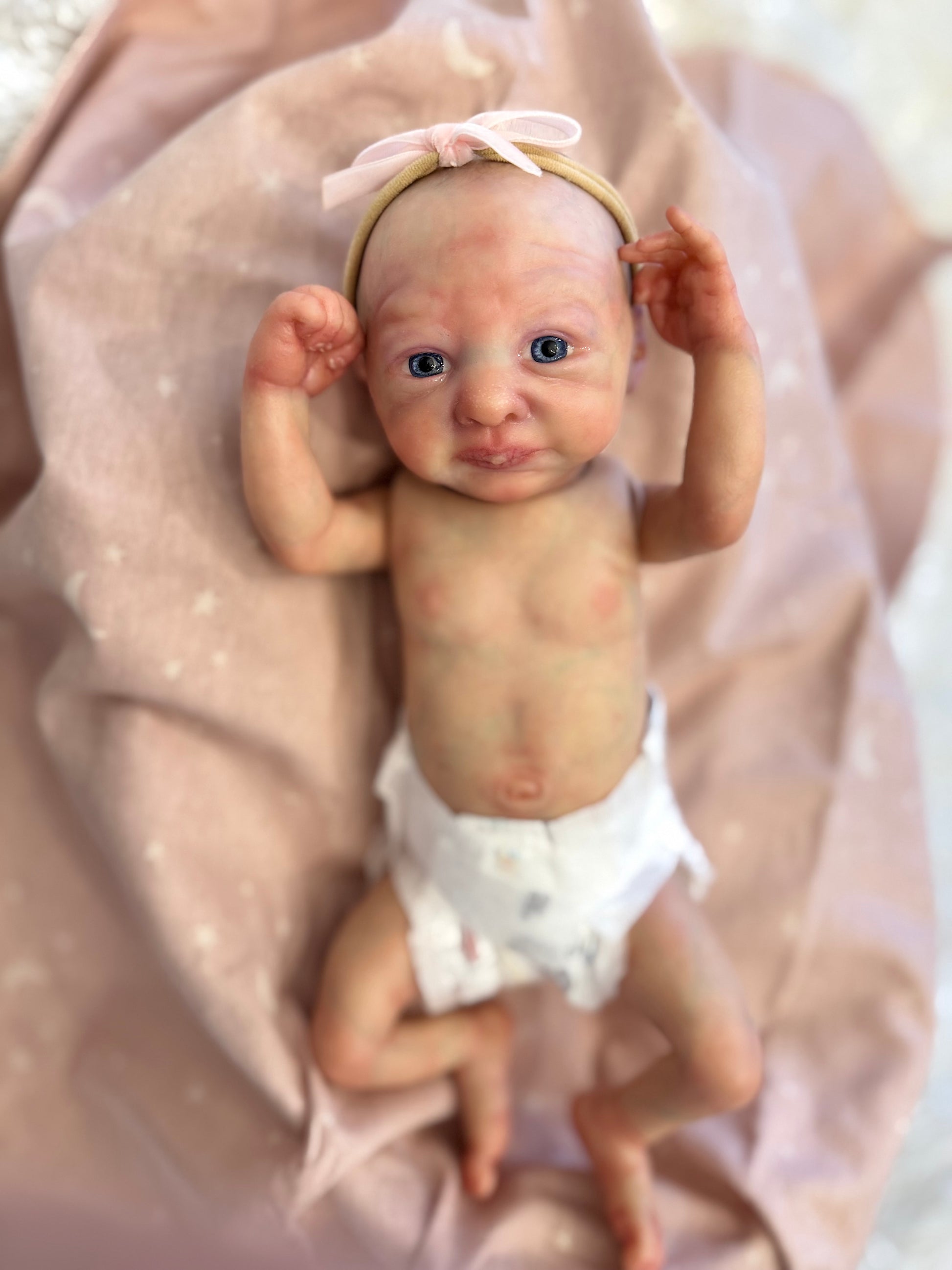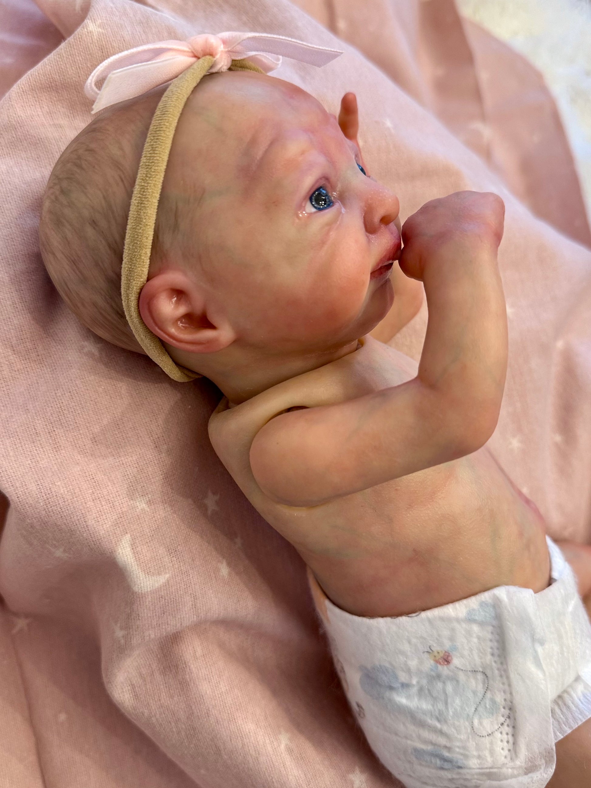 Charlie is a micro preemie baby weighing 2lb 6oz by Marita Winters. Charlie has been painted with heat set paints.