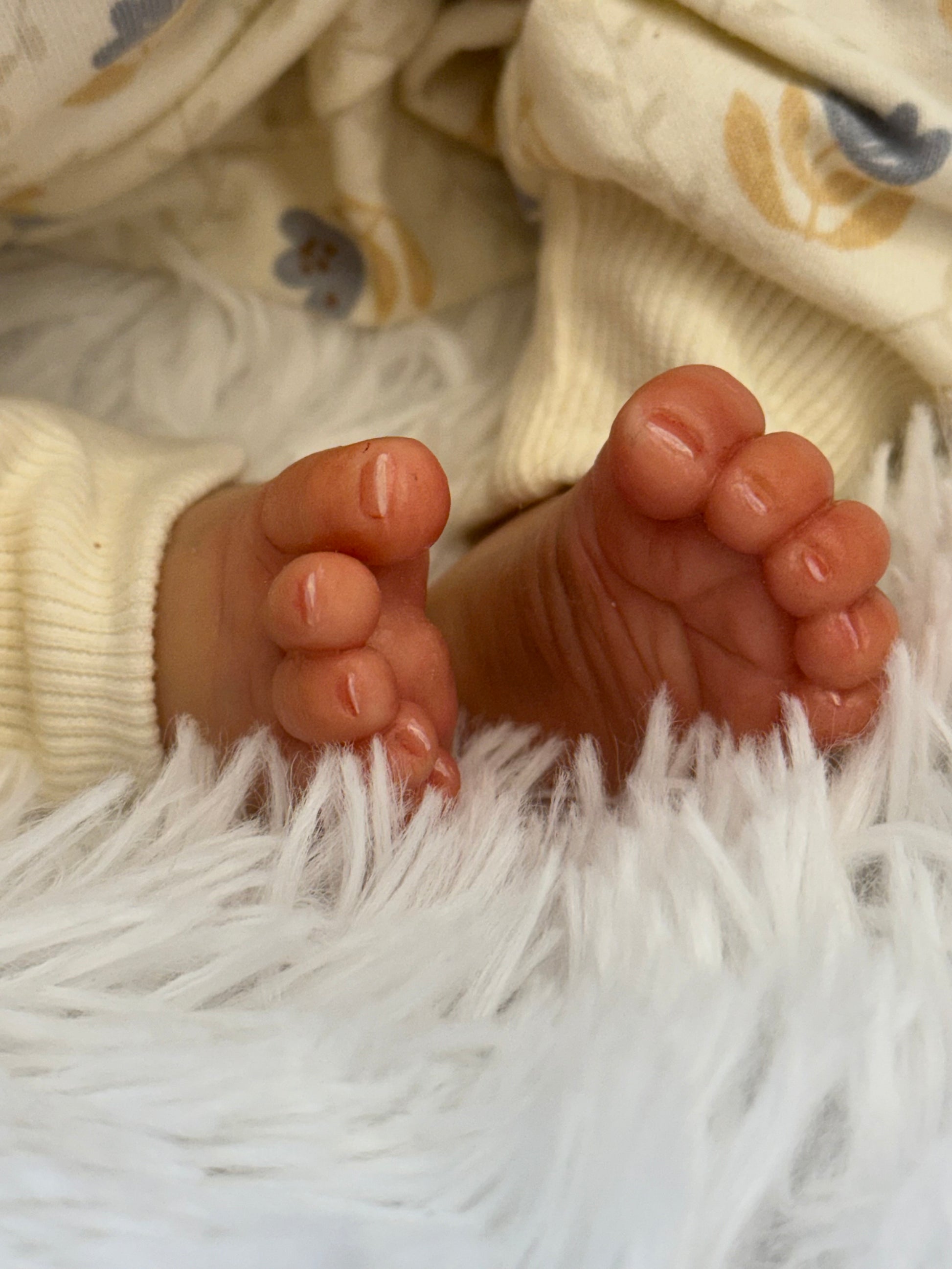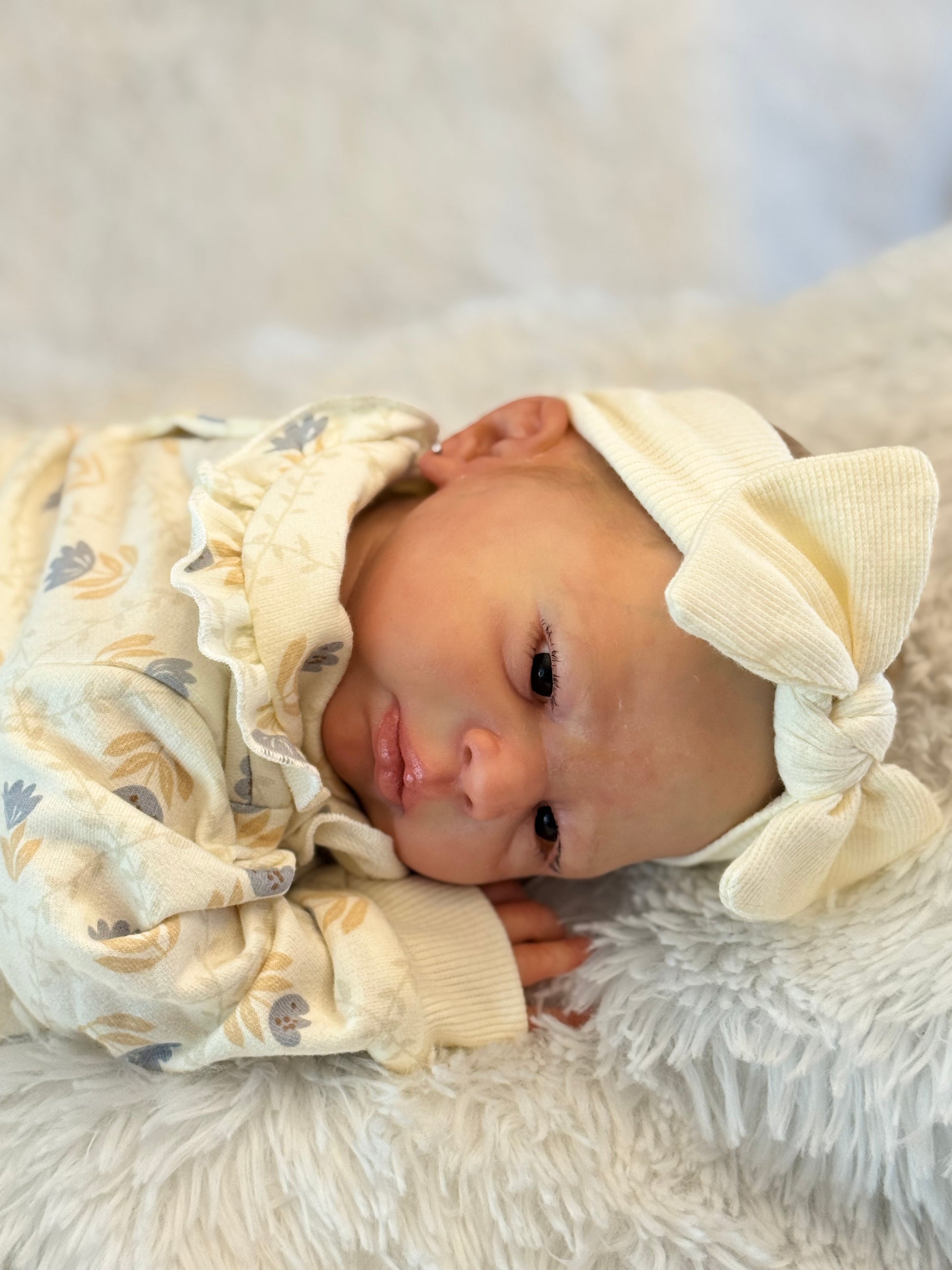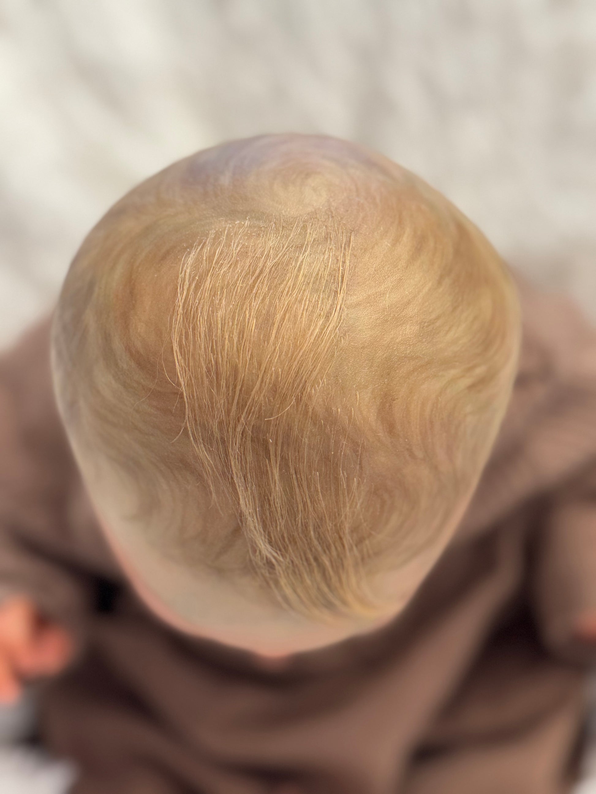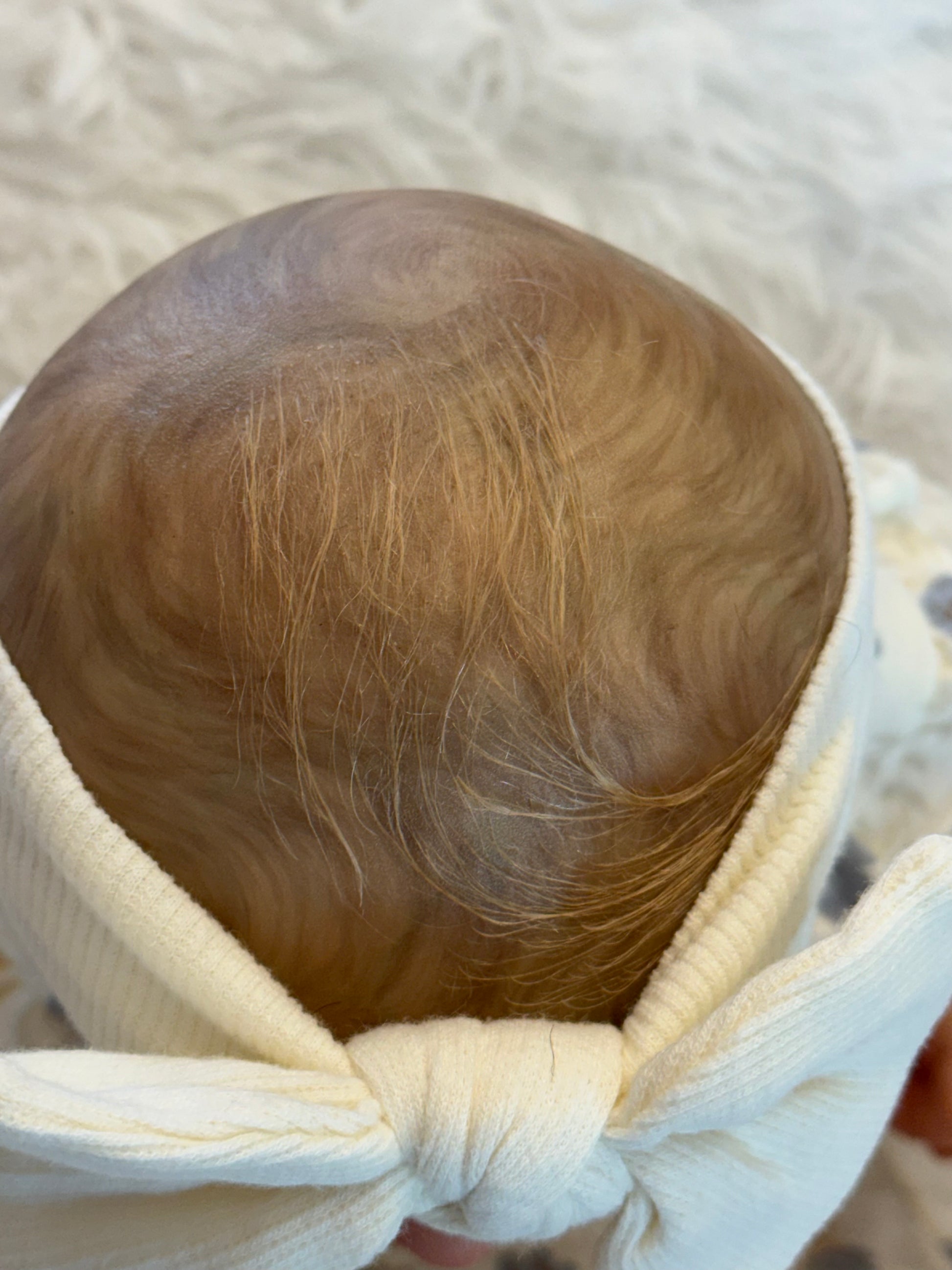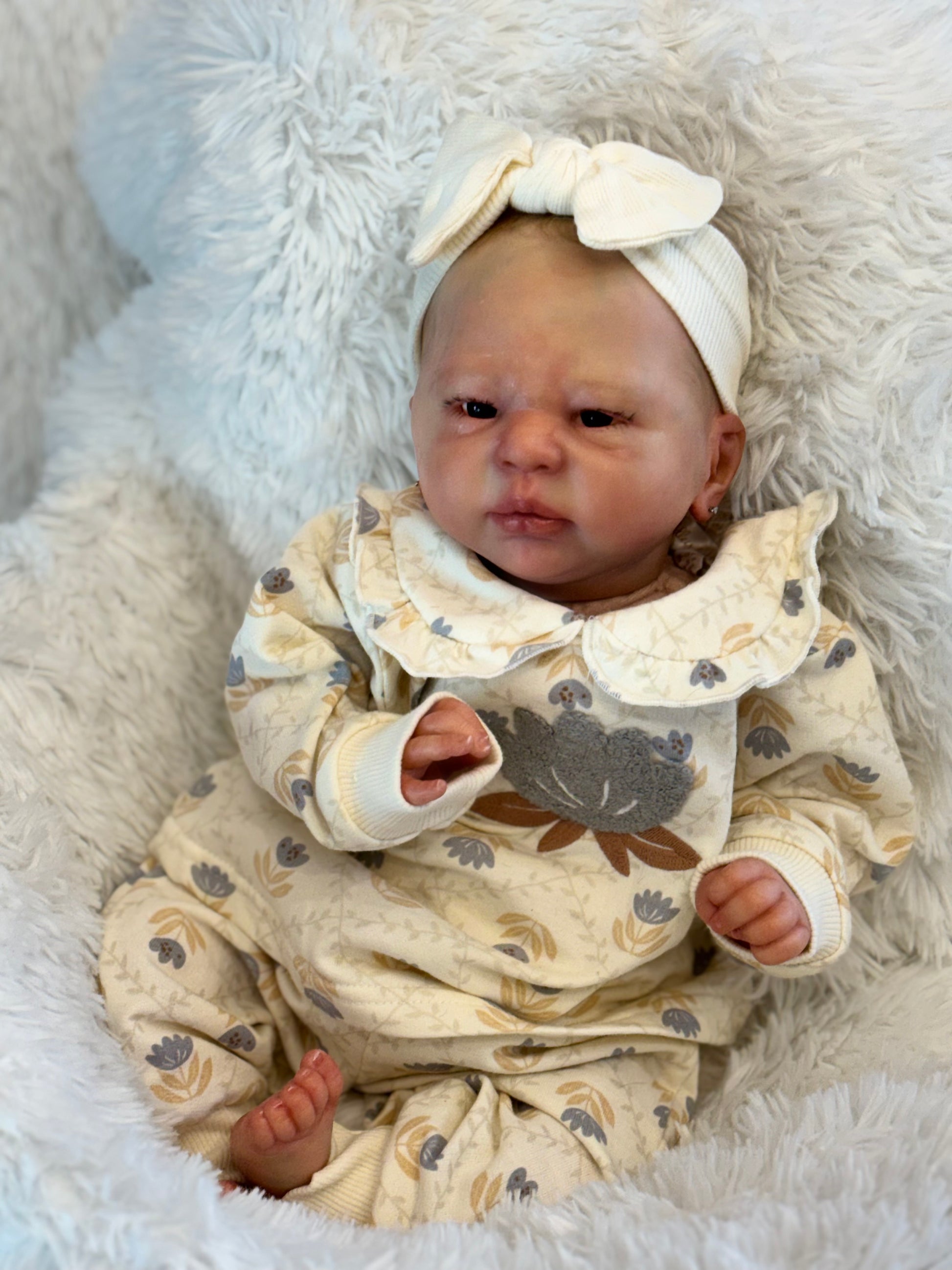 Neikie is a sold out limited edition doll by Sabine Altenkirch 437/599. She has been painted with heat set paints, and has combi hair (painted with mohair that has been microrooted on top). She has her ears pierced and comes with a magnetic pacifier.